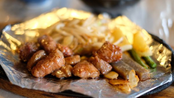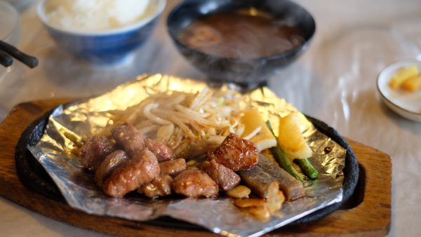 ライス(おかわり自由)と赤だし漬物がセットで、お肉はグラムで料金が変わってきます。